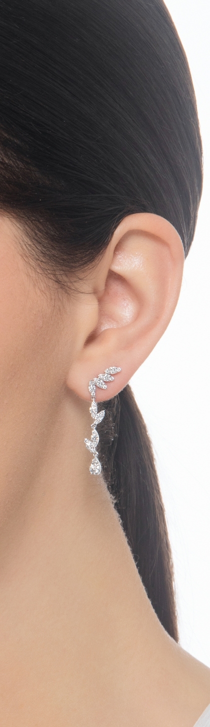 Boucles d'oreilles pendantes en or blanc 18k et diamants