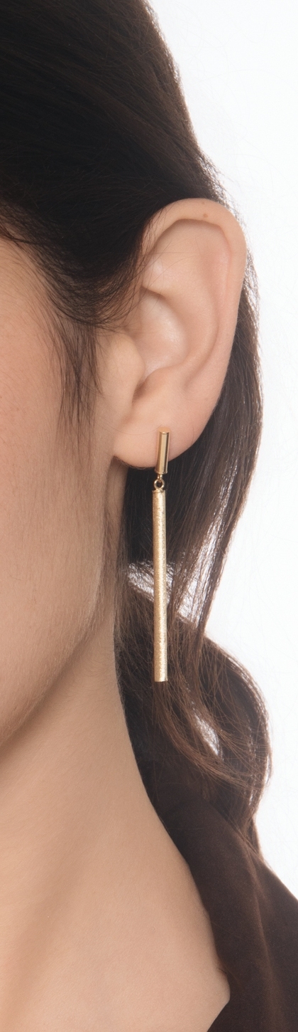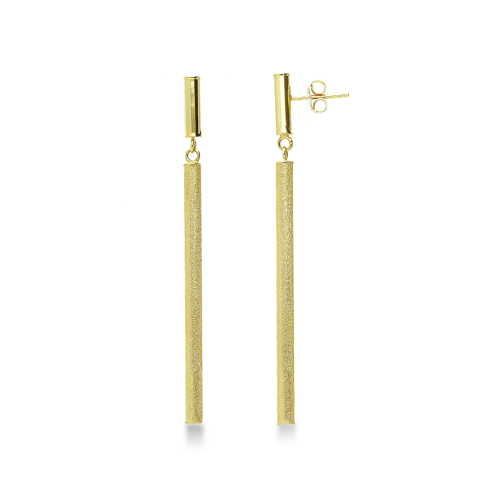 Boucles d’oreilles pendantes en or jaune 18k avec barrettes, longueur 6 cm. Design moderne et élégant, idéal pour toutes les occasions.
