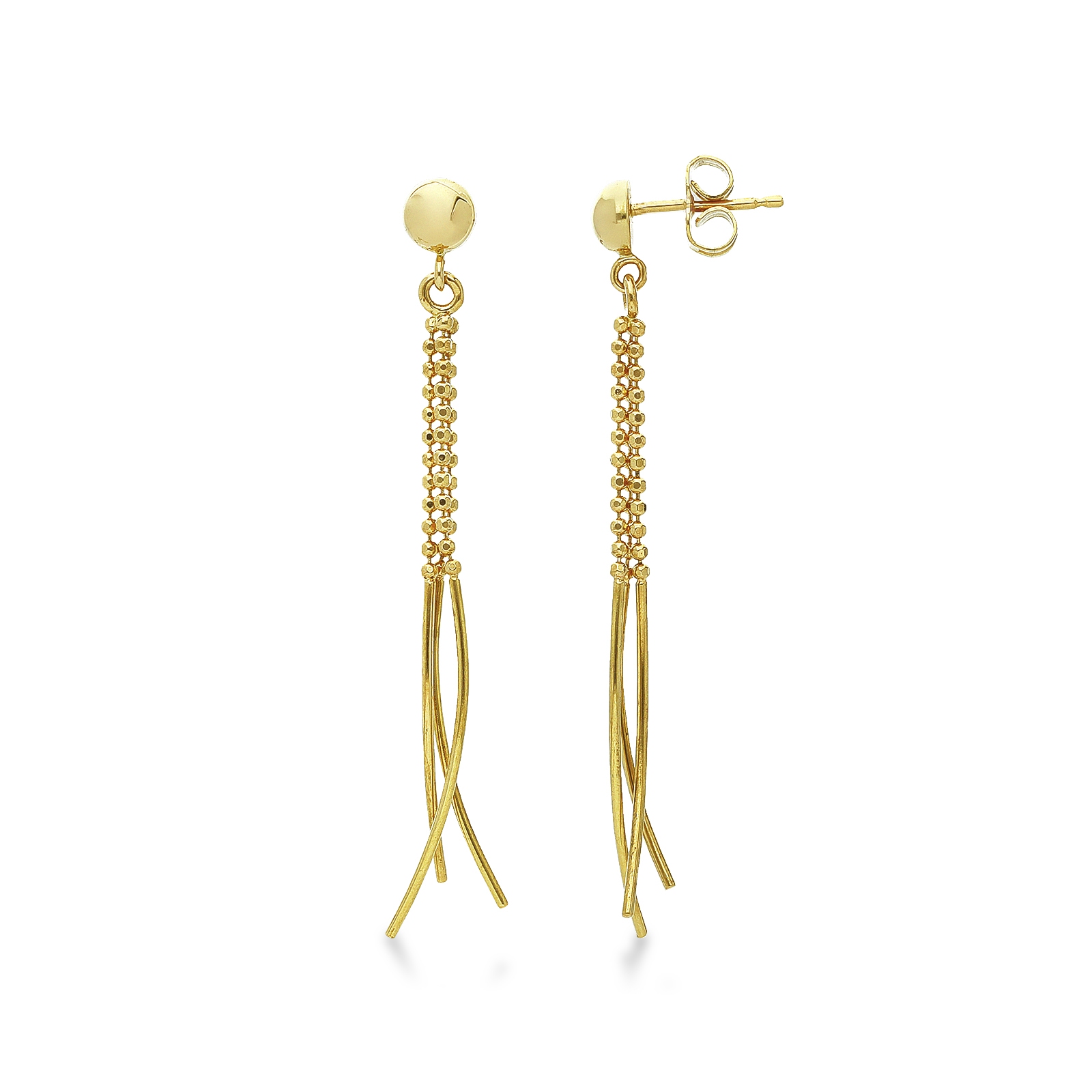 Boucles d’oreilles pendantes en or jaune 18k avec perles et barres