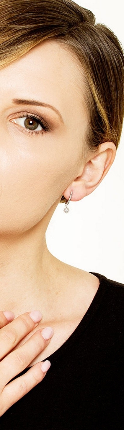 Boucles d Oreilles Perlees en Or Blanc 18k avec Pendants Ronds et Diamants