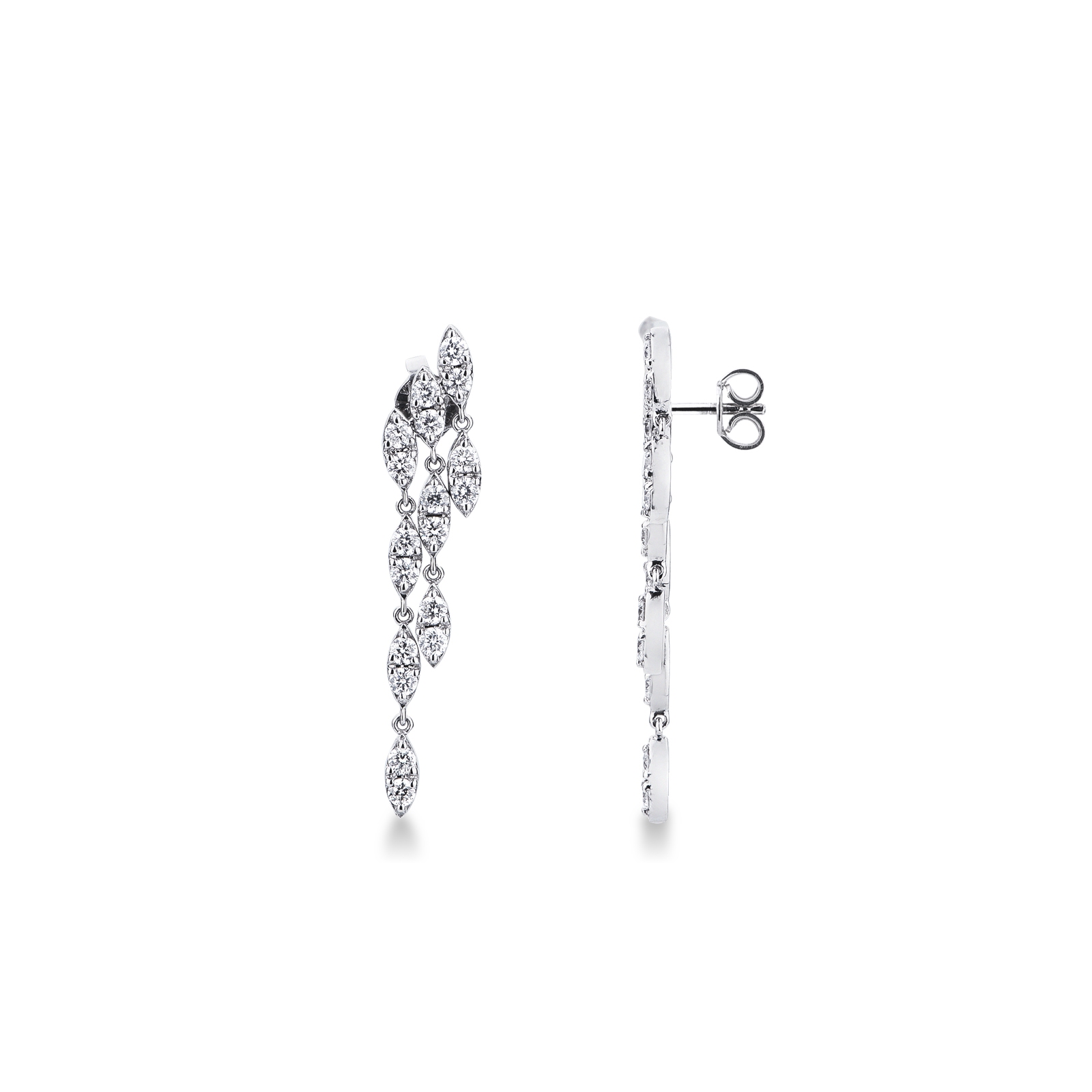 Boucles pendantes trois rangs or blanc 18k avec diamants