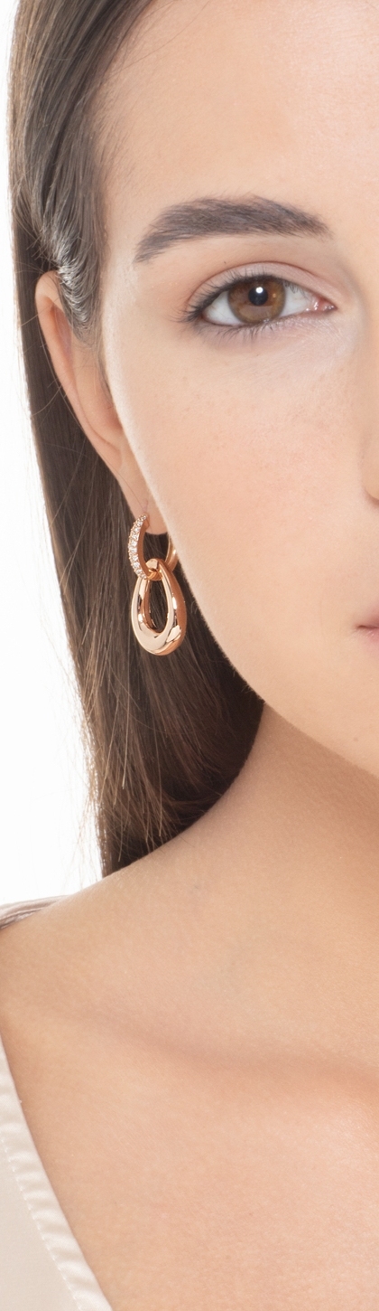 Créoles bombées en or rose 18k avec diamants et pendentif goutte