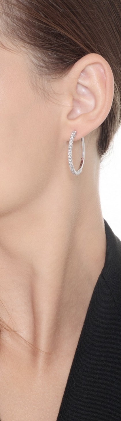 Boucles d'oreilles cercle en or blanc 18 carats avec diamants tot 1,50 ct