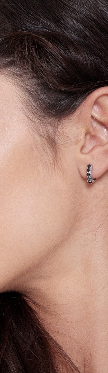 Boucles d’oreilles cercles en or blanc 18k 12 mm diamants noir