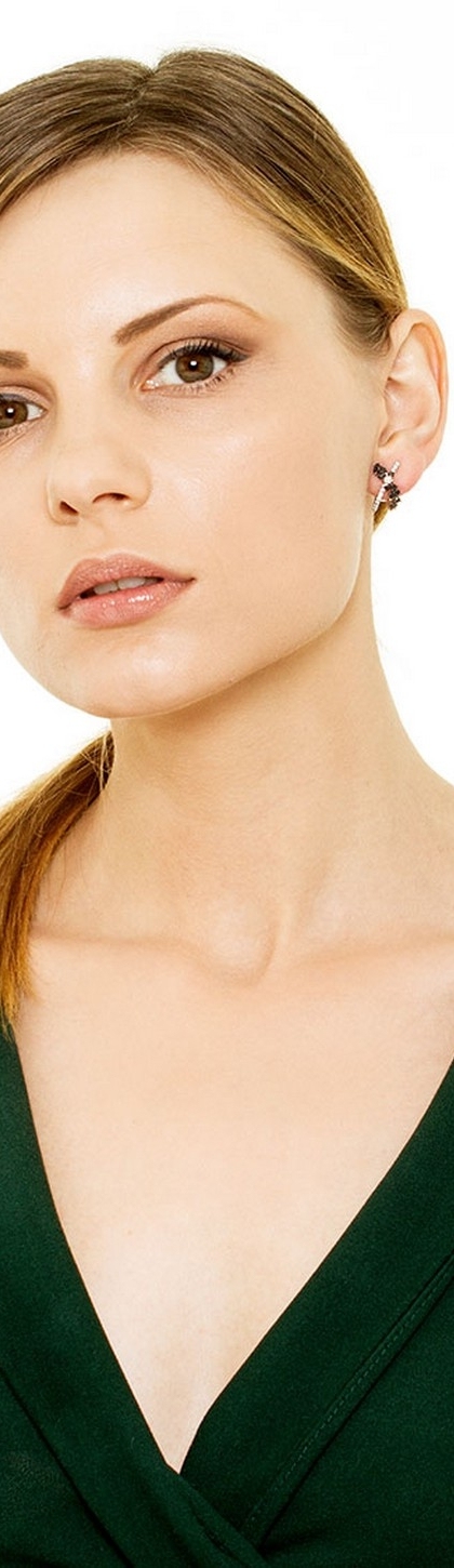 Boucles d'oreilles croisées en or blanc 18k entourés de diamants noirs