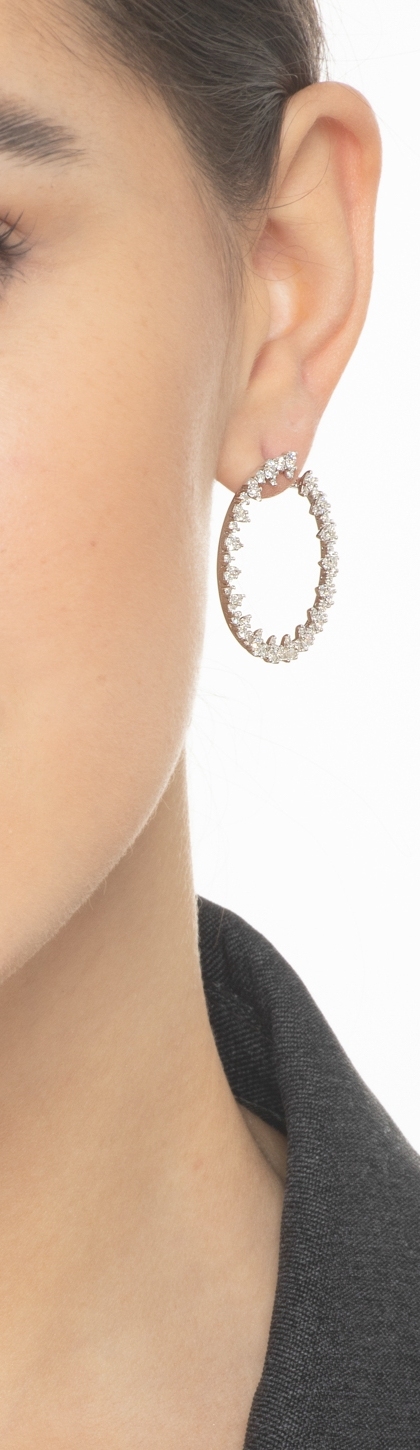 Boucles d'oreilles créoles en Or Blanc 18k avec Diamants pour femme