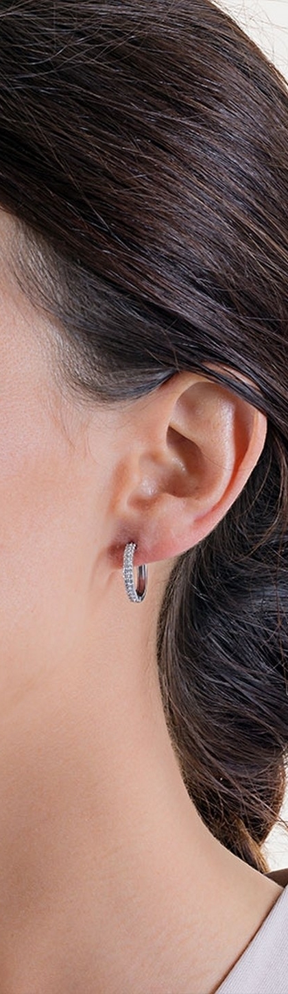 Boucles d’oreilles créoles en or blanc 18k avec zircons