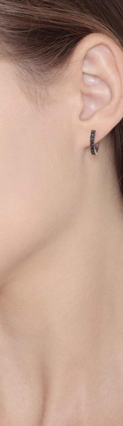 Boucles d'oreilles créoles en or blanc 18k et diamants noirs