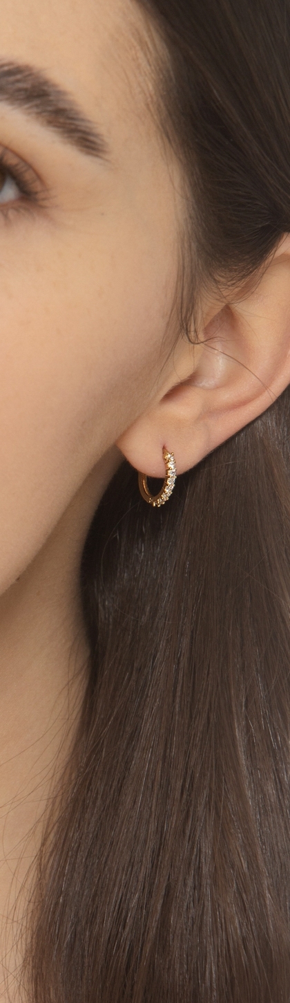 Boucles d’oreilles créoles en or jaune 18k avec zircones 1,3 cm