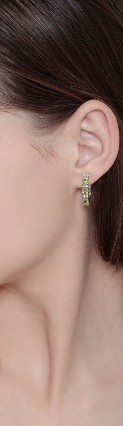 Boucles d’oreilles en or blanc 18k avec péridots et diamants