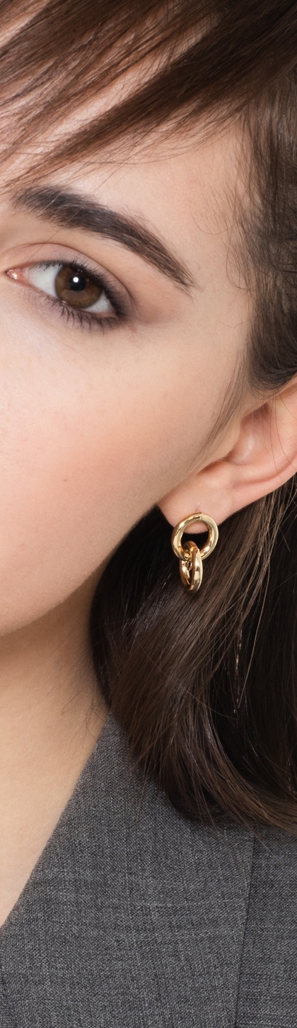 Boucles d'Oreilles en Or Jaune 18k avec Double Anneau en Canna Vide