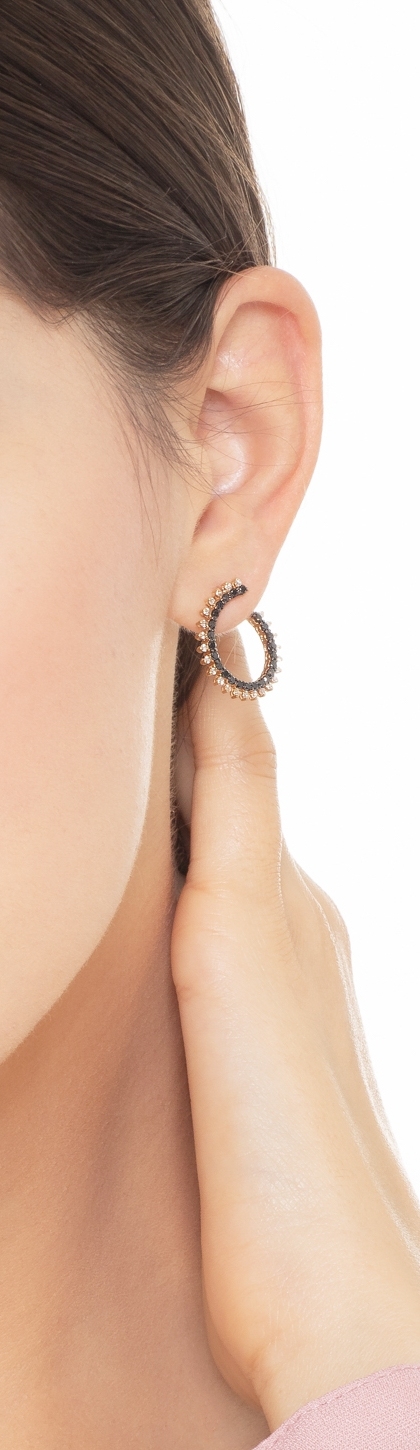 Boucles d’oreilles en or rose 18 carats avec diamants noirs et blancs