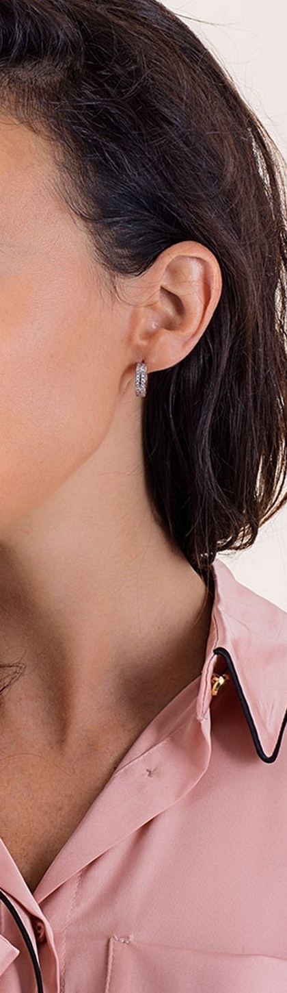 Boucles d’oreilles or blanc 18K deux rangées zircons