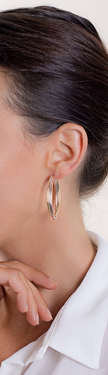 Boucles d'oreilles Ovales en Or Jaune, Blanc et Rose 18k