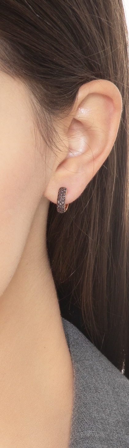 Boucles d’oreilles ovales en or rose 18k avec zirconiums bruns