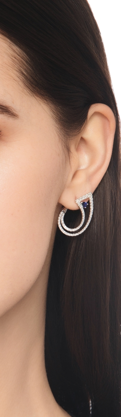 Boucles d’oreilles saphir bleu et diamants en or blanc 18k