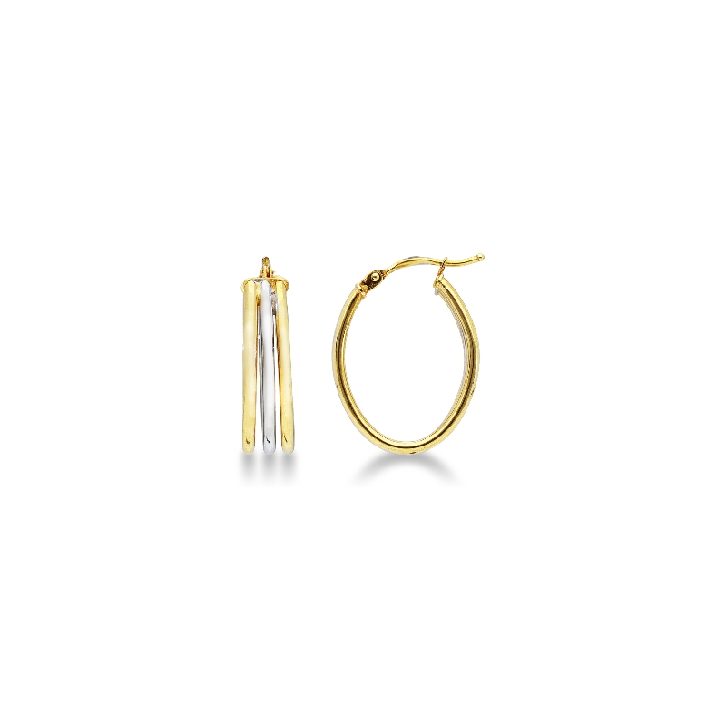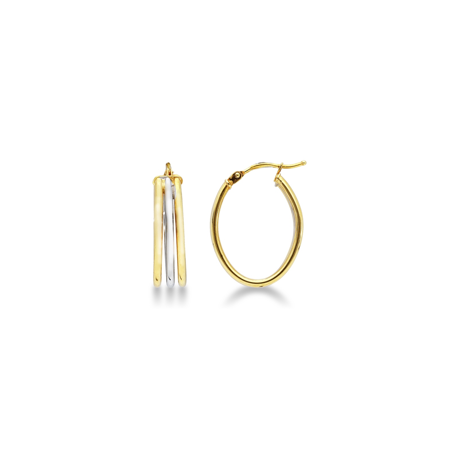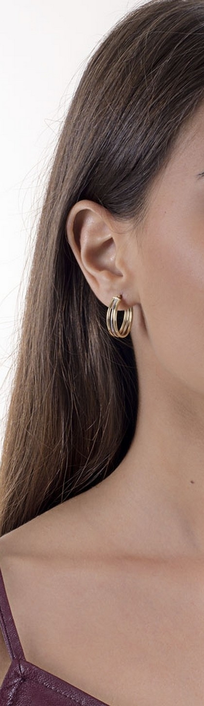 Boucles d’oreilles trois rangs en or jaune et blanc 18k