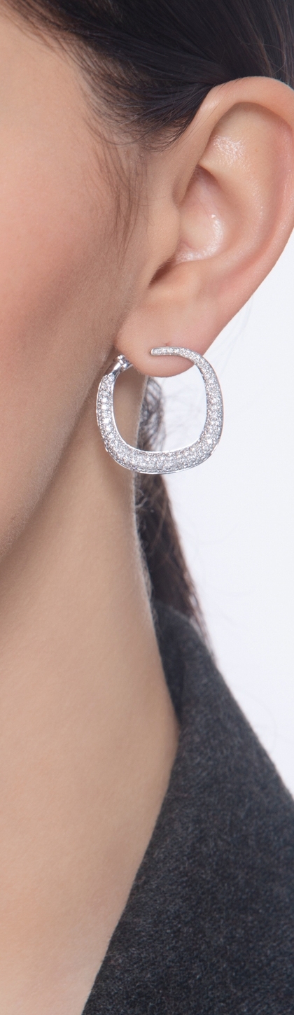 Créoles design carré en or blanc 18k serties de diamants taille brillant