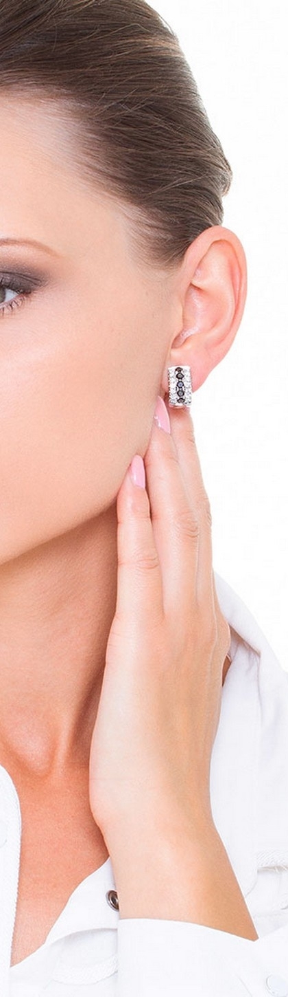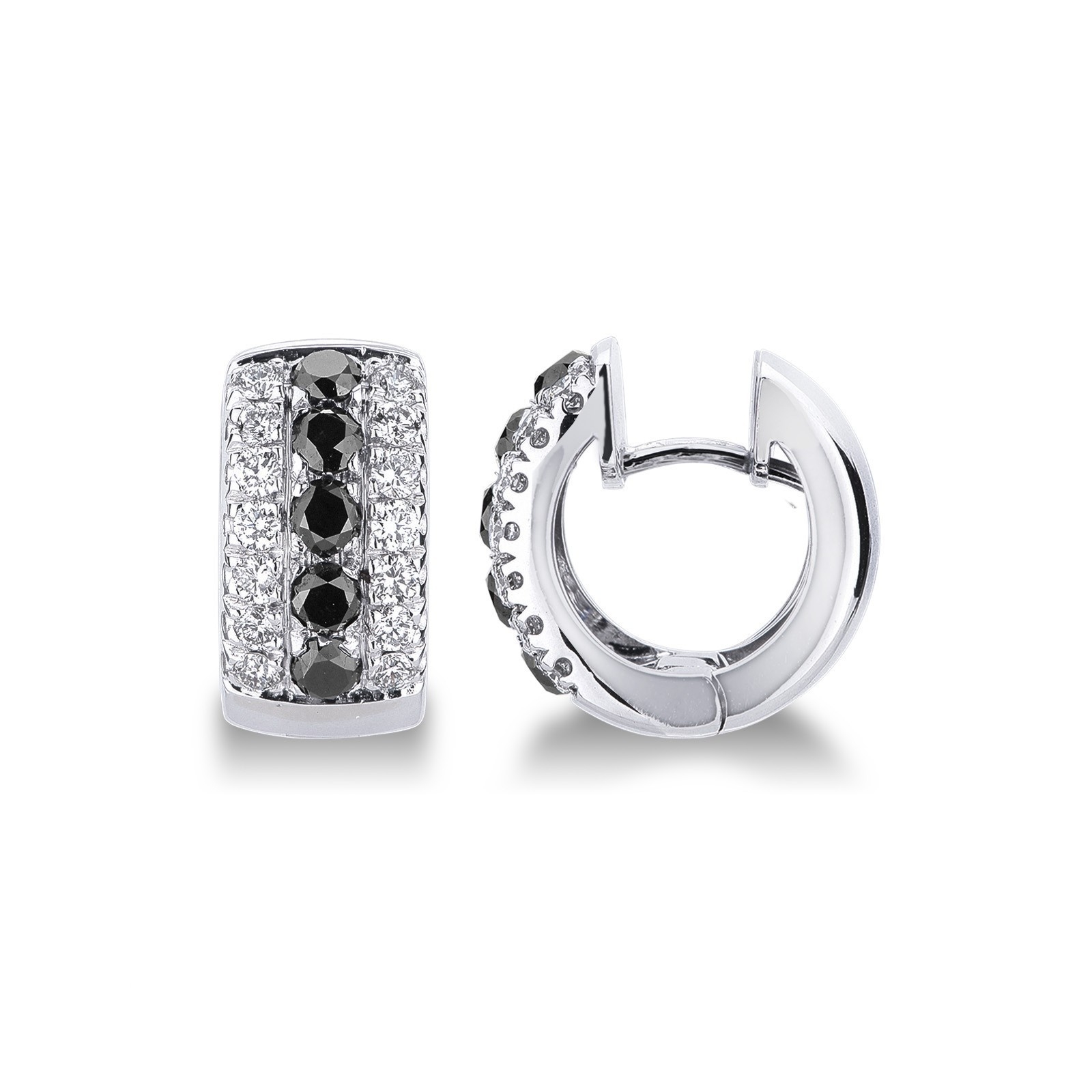 Créoles en Or Blanc 18k avec Diamants Noirs et Blancs