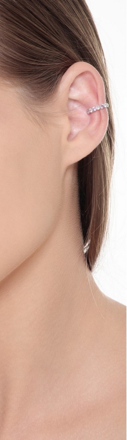 Earcuff en or blanc 18kt diamants et saphirs roses