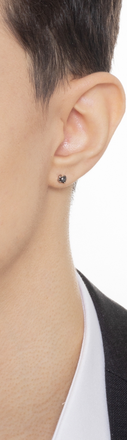 Boucle d'oreille individuelle en or blanc 18 carats à quatre griffes avec diamant noir, 0,18 ct