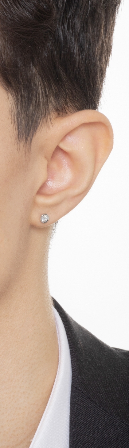 Boucle d'oreille individuelle, un point de lumière délicat en or blanc 18 carats, avec un diamant brillant, de couleur H et de pureté VS