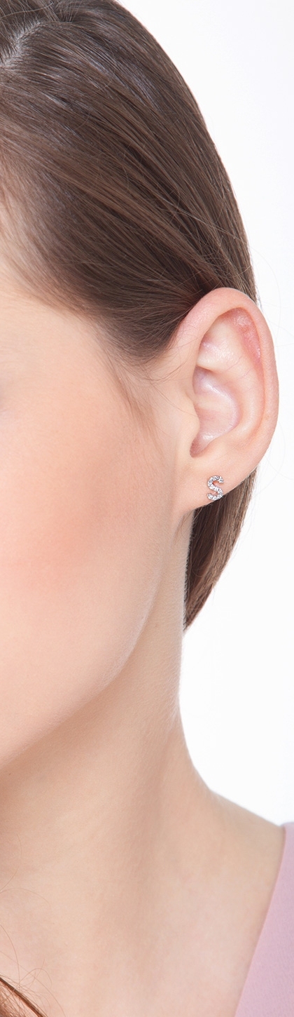 Boucle d'oreille lettre alphabet S en diamants et or blanc 750