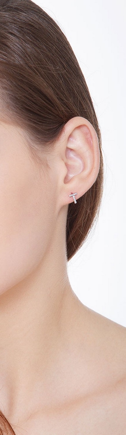 Boucle d'oreille lettre T en diamants et or blanc 750