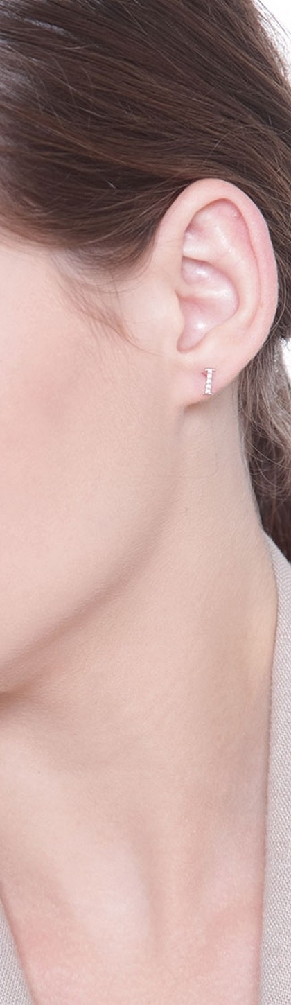 Boucle d'oreille unique en or blanc 18 carats, avec une lettre I sertie de diamants taille brillant couleur H et pureté VS. Hauteur de la lettre : 7 mm.