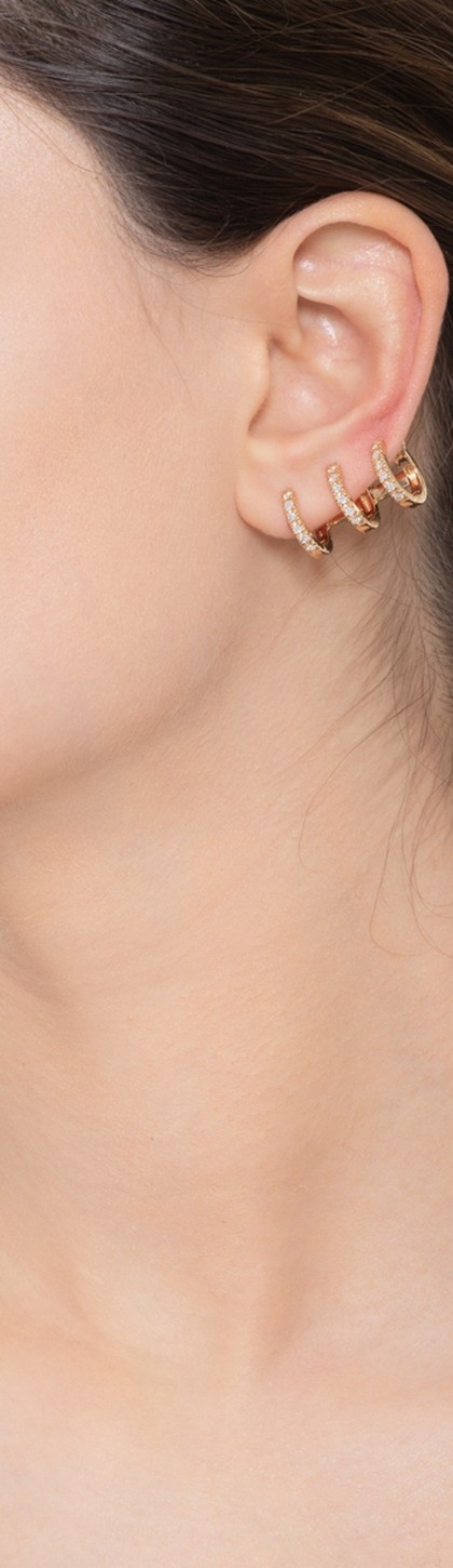 Boucle d’oreille unique 3 cercles diamants or rose 18K