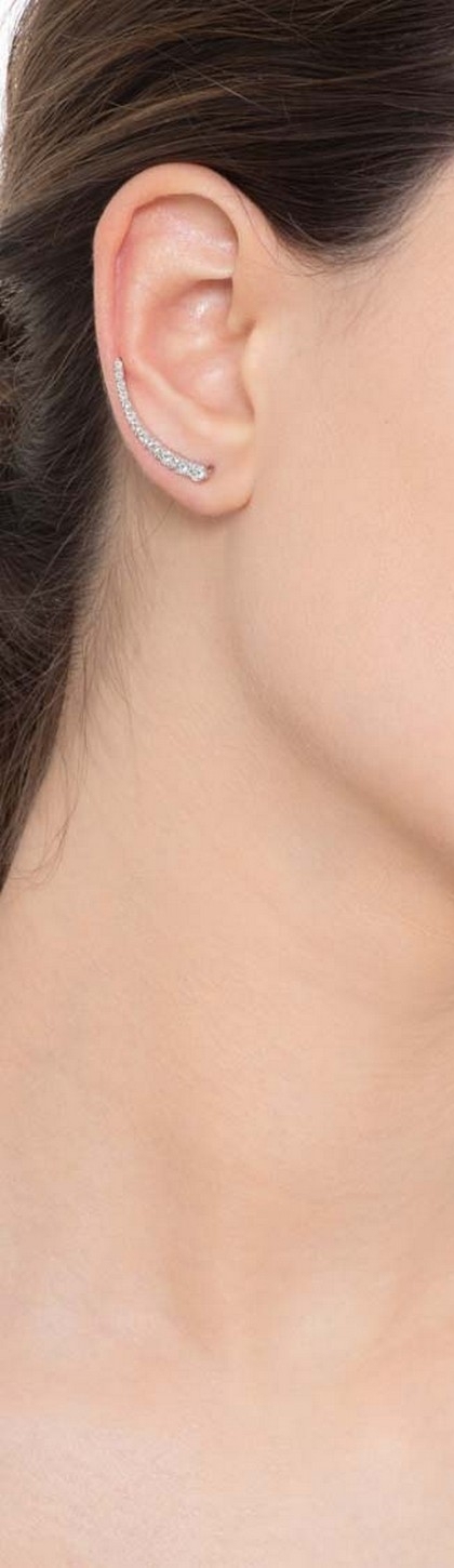Boucle d'oreille unique droite en or blanc 18 carats avec diamants