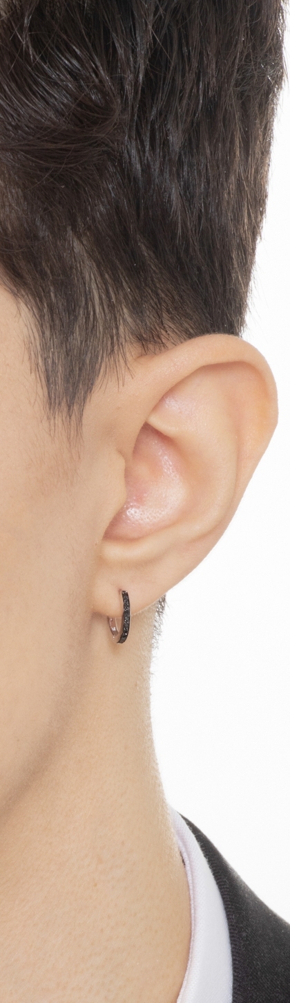 Créole mono en or blanc 750 avec diamants noirs