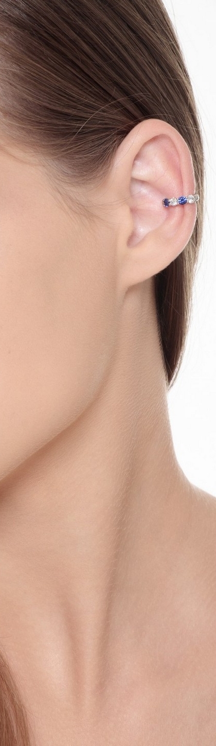 Earcuff en or blanc 18 carats avec diamants et saphirs bleus