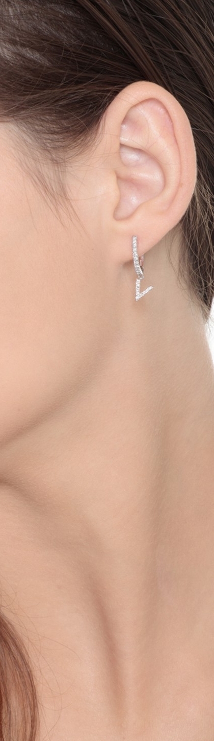 Mono boucle d oreille en or blanc 18 carats, avec la lettre V