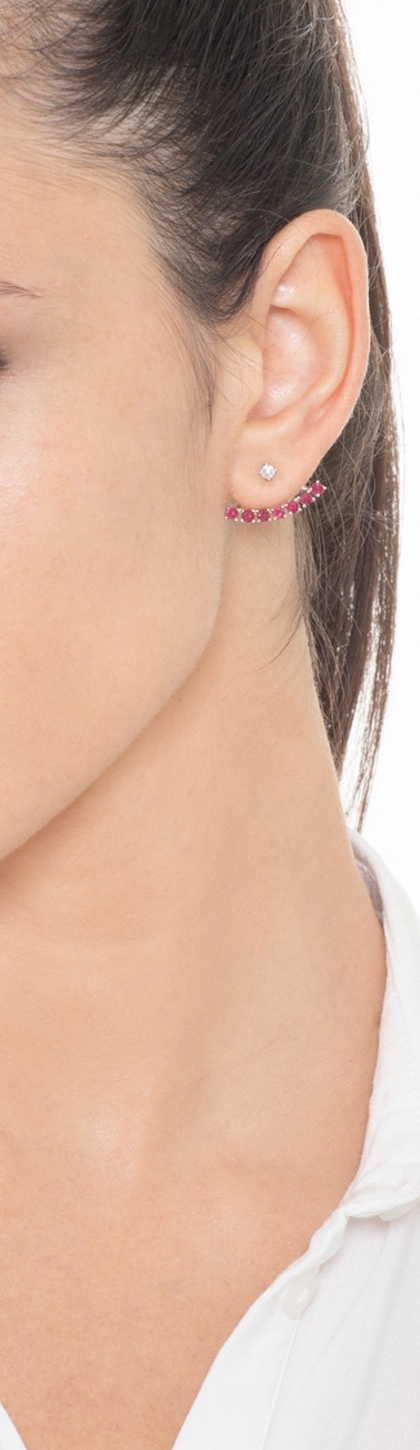 Mono boucle d'oreille en or blanc 18 carats avec rubis et diamant