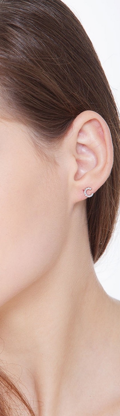 Mono Boucle d’Oreille en Or Blanc 18k avec Lettre C et Diamants