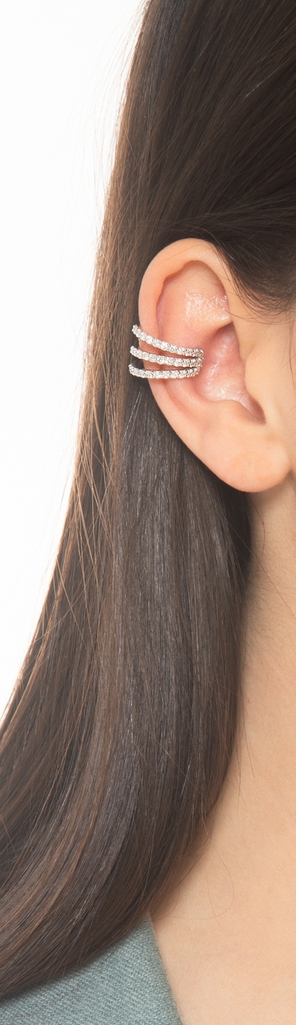 Mono boucle d’oreille en or blanc 18k avec trois rangées de diamants
