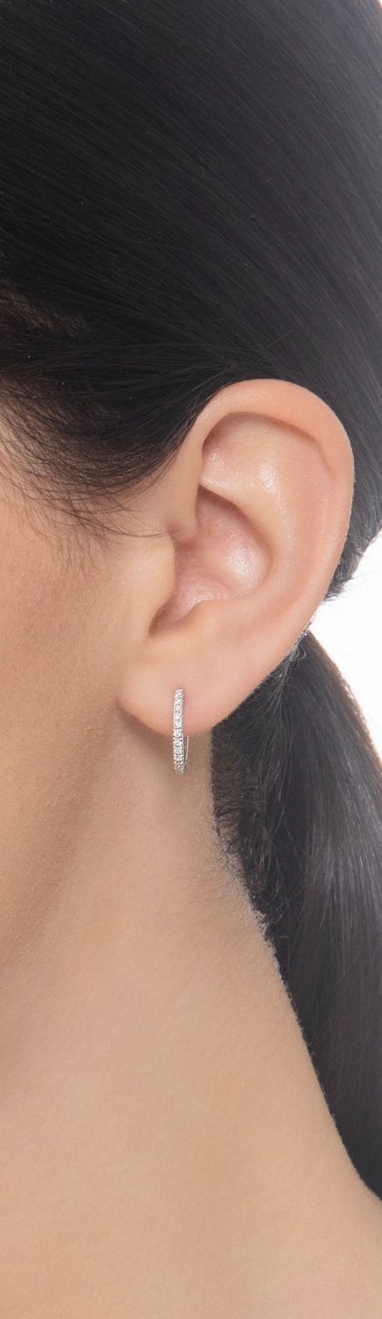 Mono boucle d'oreille ovale en or blanc 18 carats et diamants