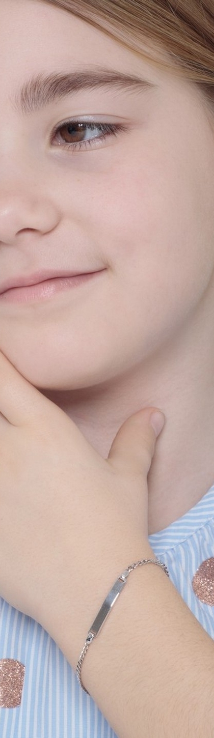 Bracelet avec plaque personnalisable en or blanc 18 carats, avec maille gourmette plate à longueur réglable.