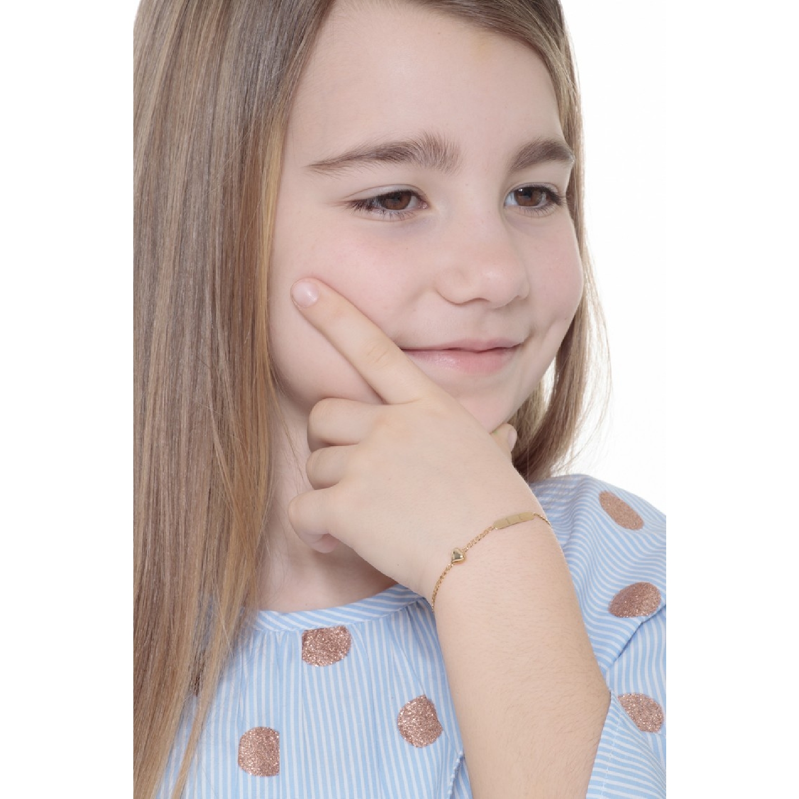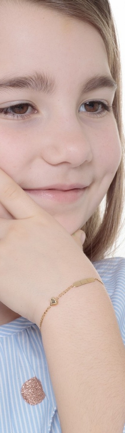 Bracelet en or jaune 18k avec plaque et cœur