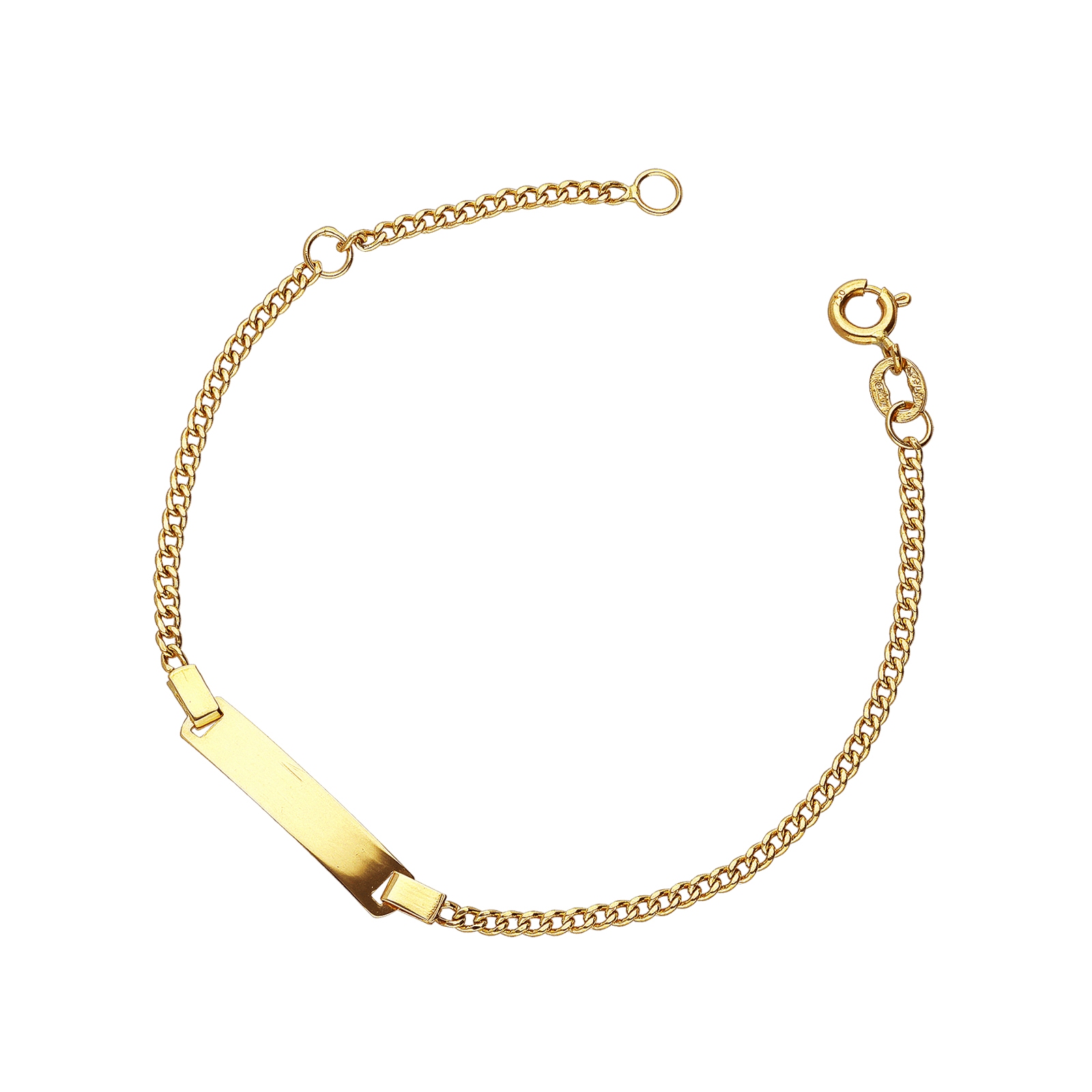 Bracelet en or jaune 18k avec piastrina personnalisable. Longueur réglable 13,5 cm + 2 cm.