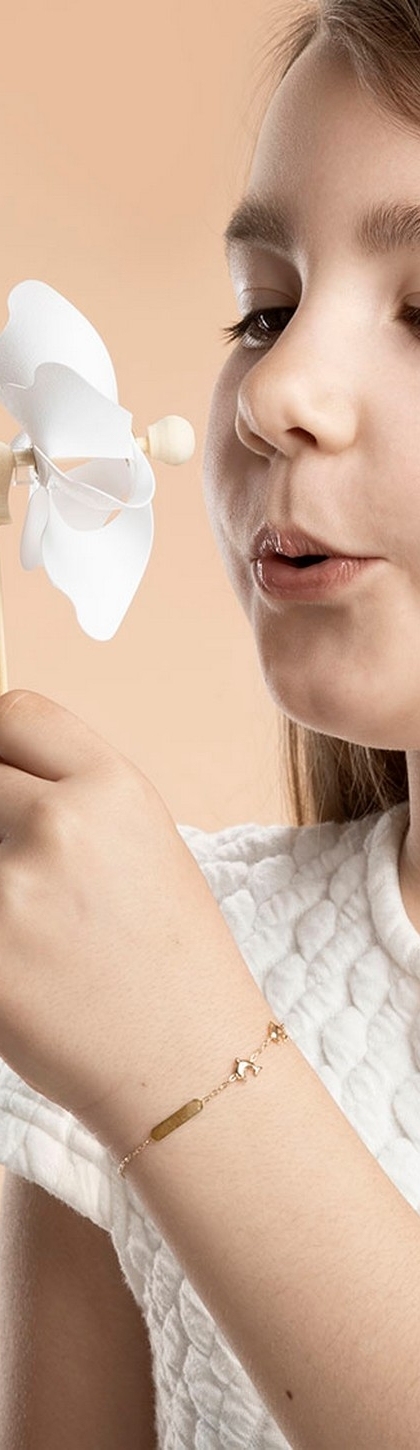 Bracelet fille en or jaune 18 carats plaque et dauphins