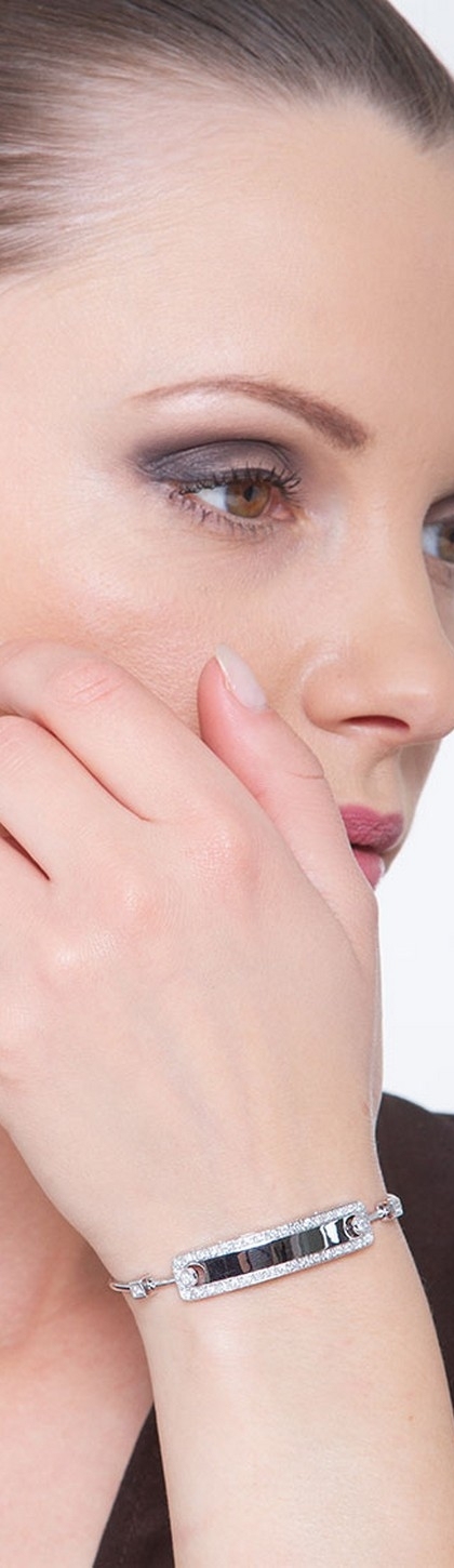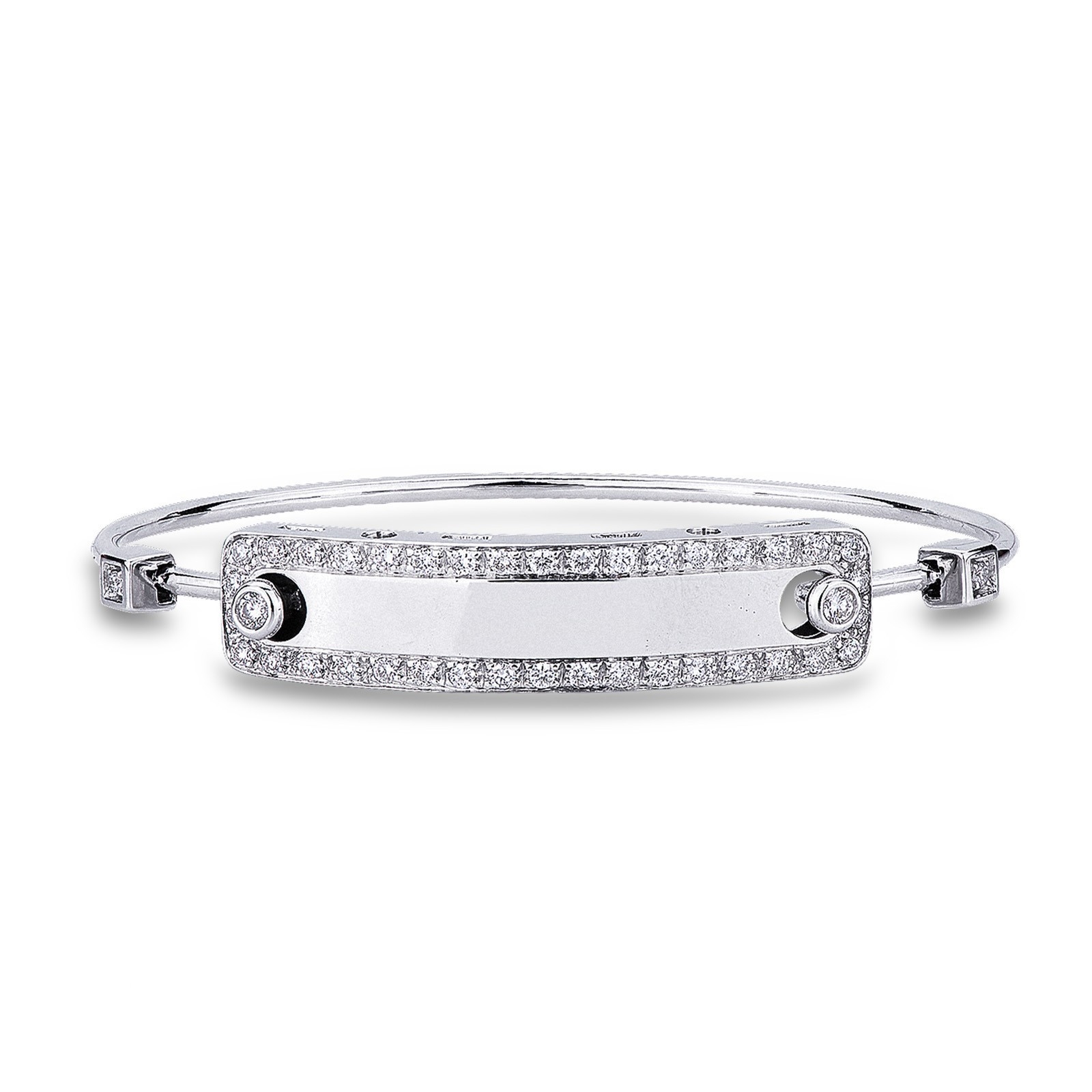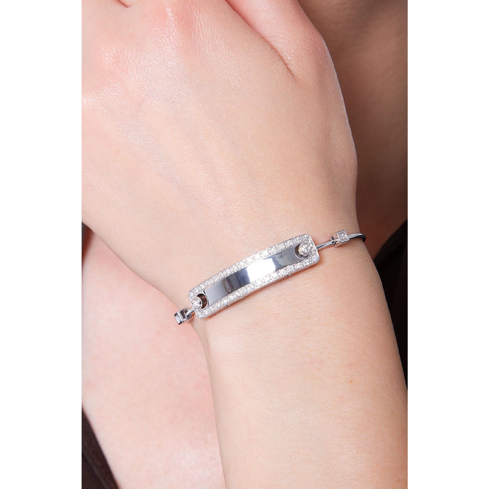 Bracelet Or Blanc 18k avec plaque et diamants sertis