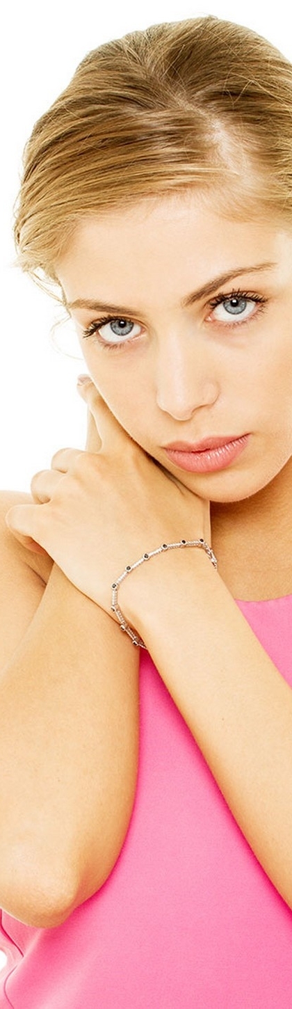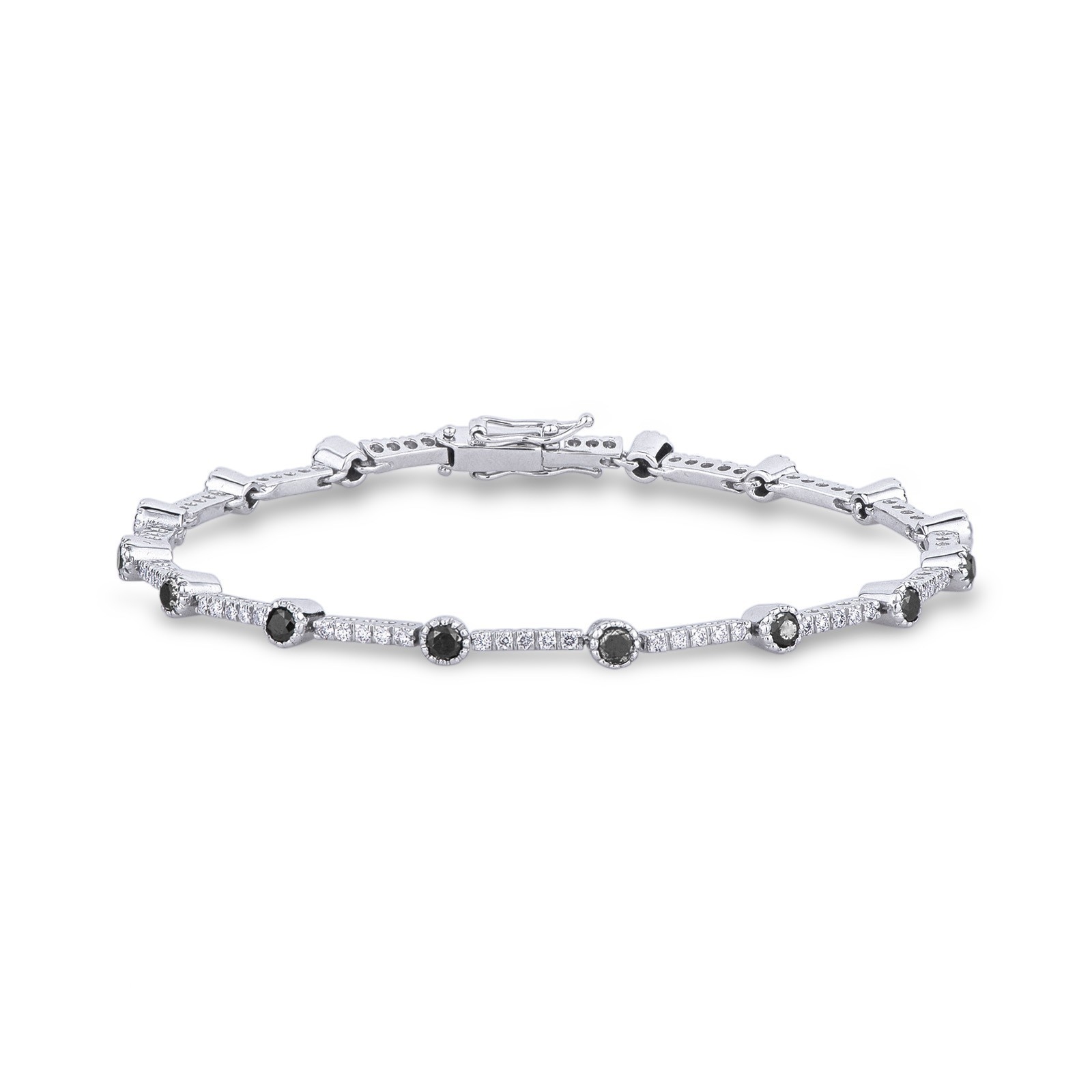 Bracelet Alterné en Or Blanc 18k avec Diamants Noirs et Blancs