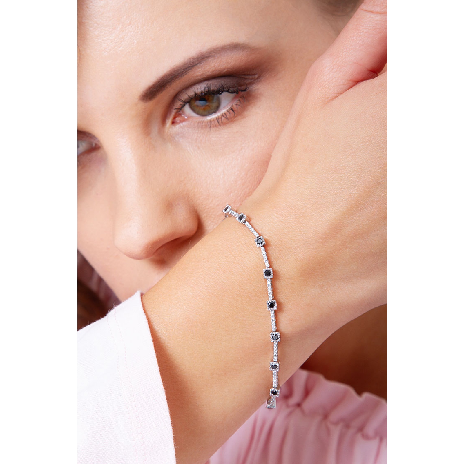 Bracelet alterné en or blanc 18k avec diamants noirs et blancs