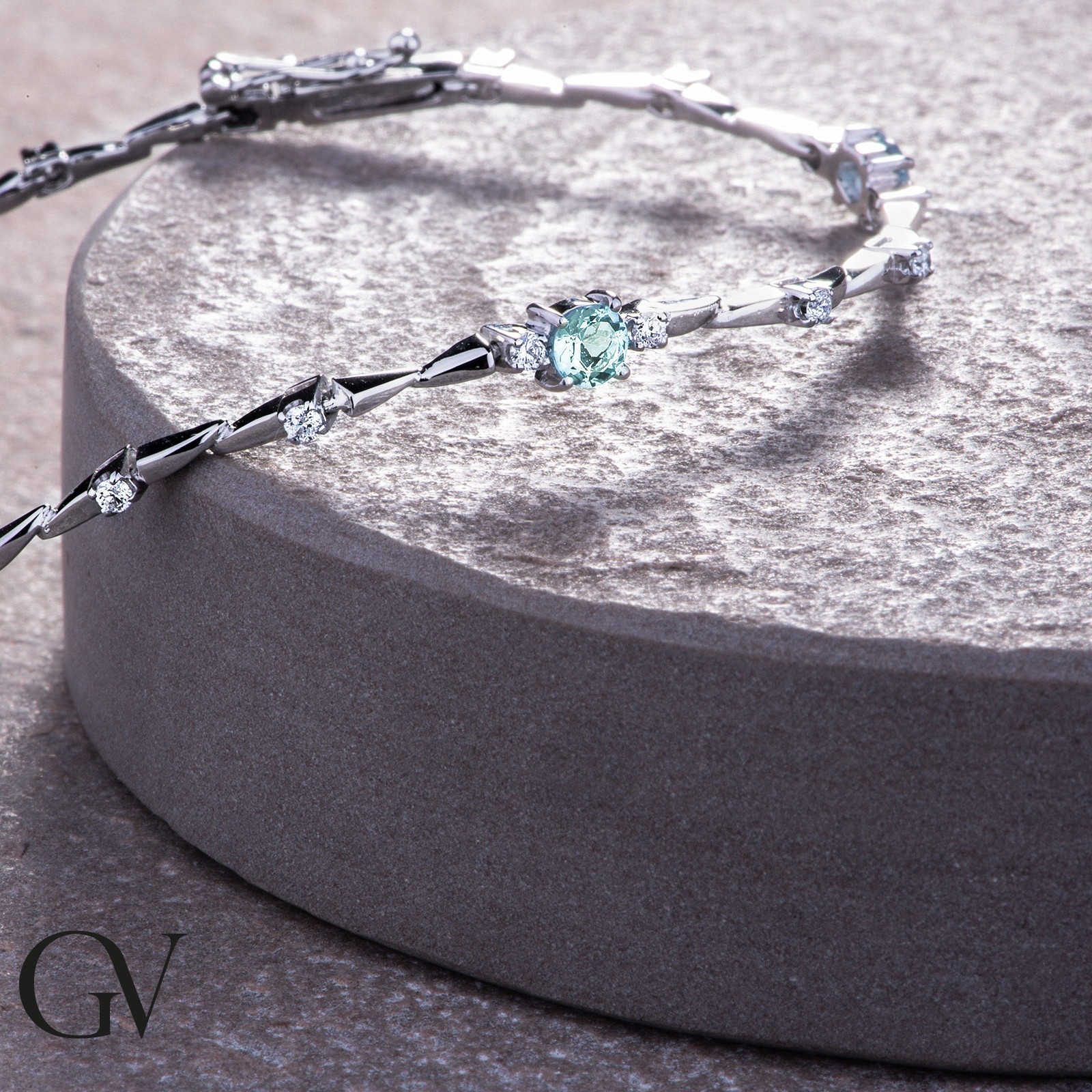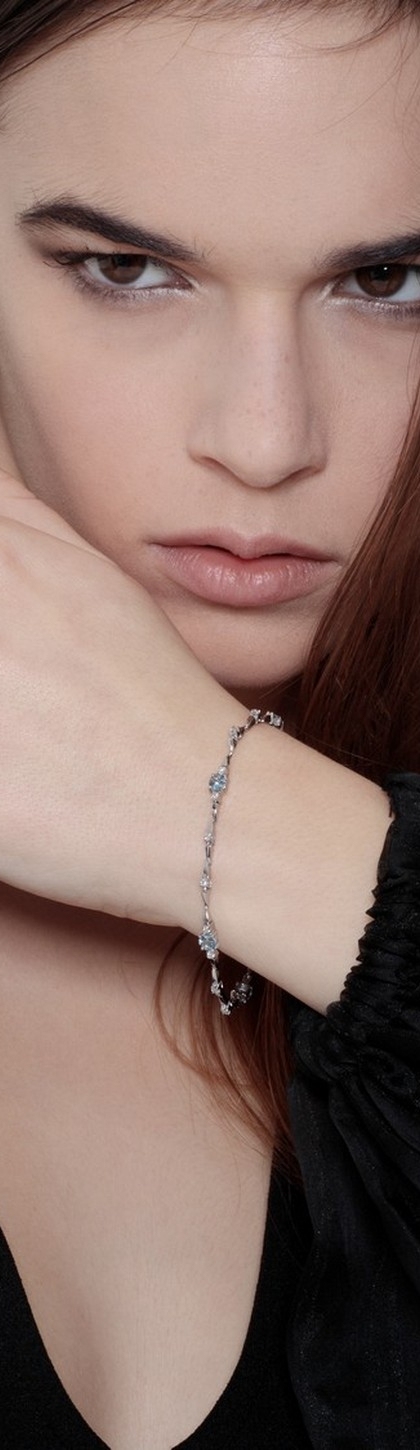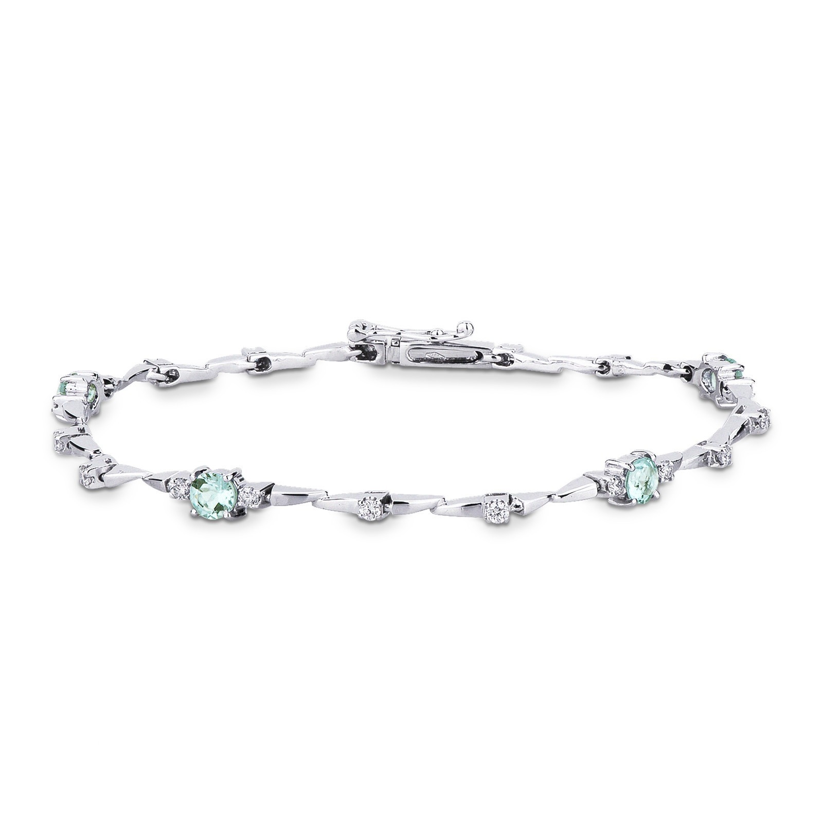 Bracelet en or blanc 18k avec aiguamarines ovales et diamants