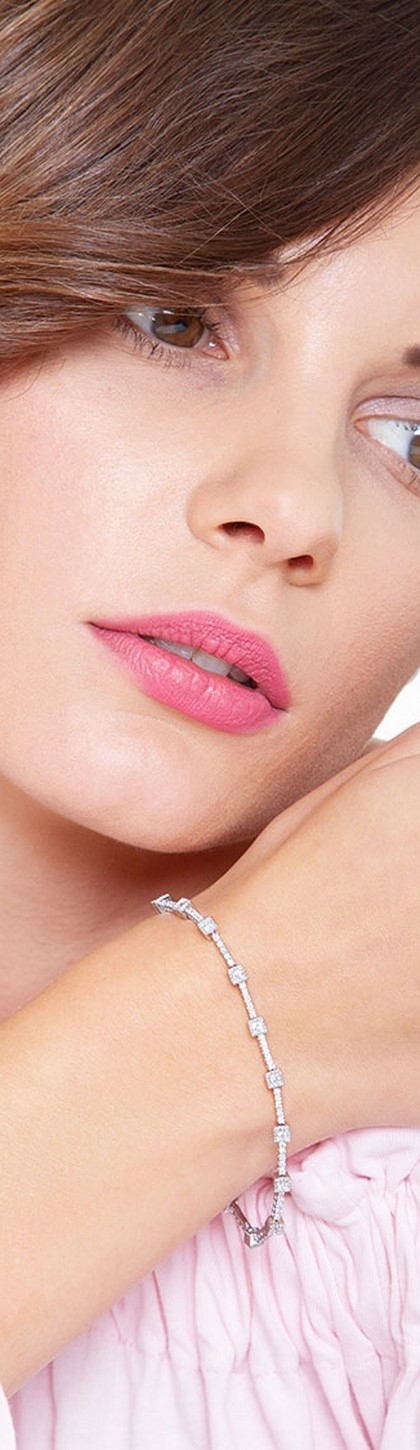 Bracelet en or blanc 18k avec segments carrés et diamants
