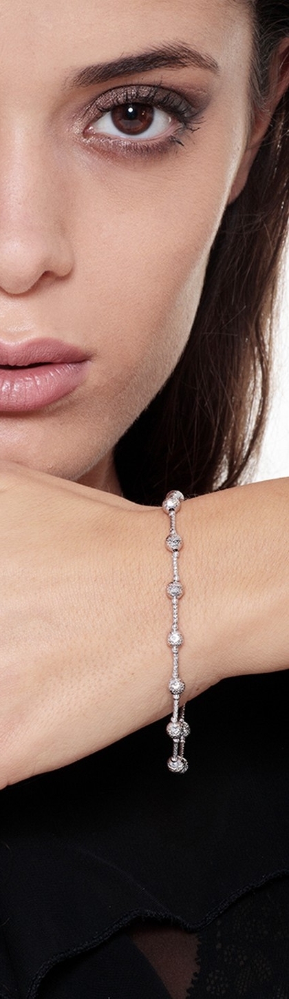 Bracelet en Or Blanc 18k avec perles diamantées de 19 cm