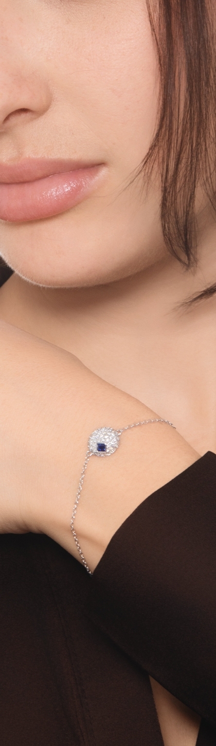 Bracelet avec pendentif ovale en diamants et saphir bleu