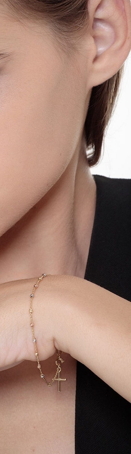 Bracelet en 3 ors 18k avec Inserts Diamantés et Pendentifs Sacrés